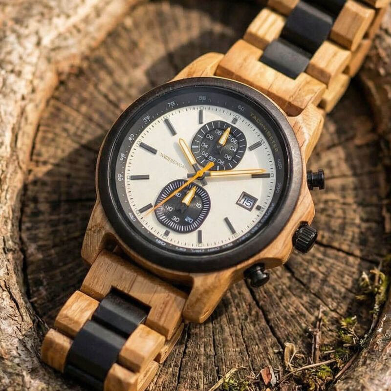 Zamówiony zegarek zostanie dostarczony w eleganckim pudełku wykonanym z naturalnego drewna. To nie tylko praktyczne opakowanie, ale również piękny dodatek, który podkreśli wyjątkowość Twojego zakupu. Idealne rozwiązanie na prezent lub jako sposób na eleganckie przechowywanie zegarka.