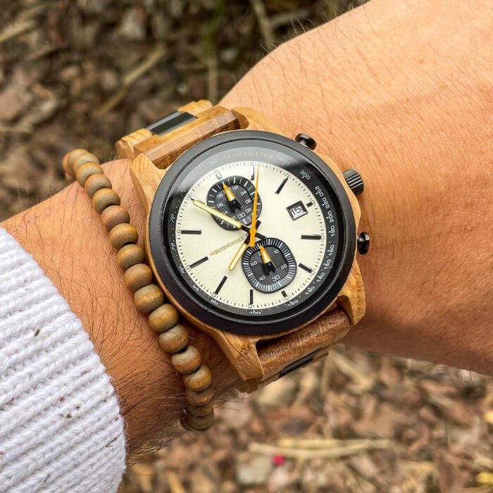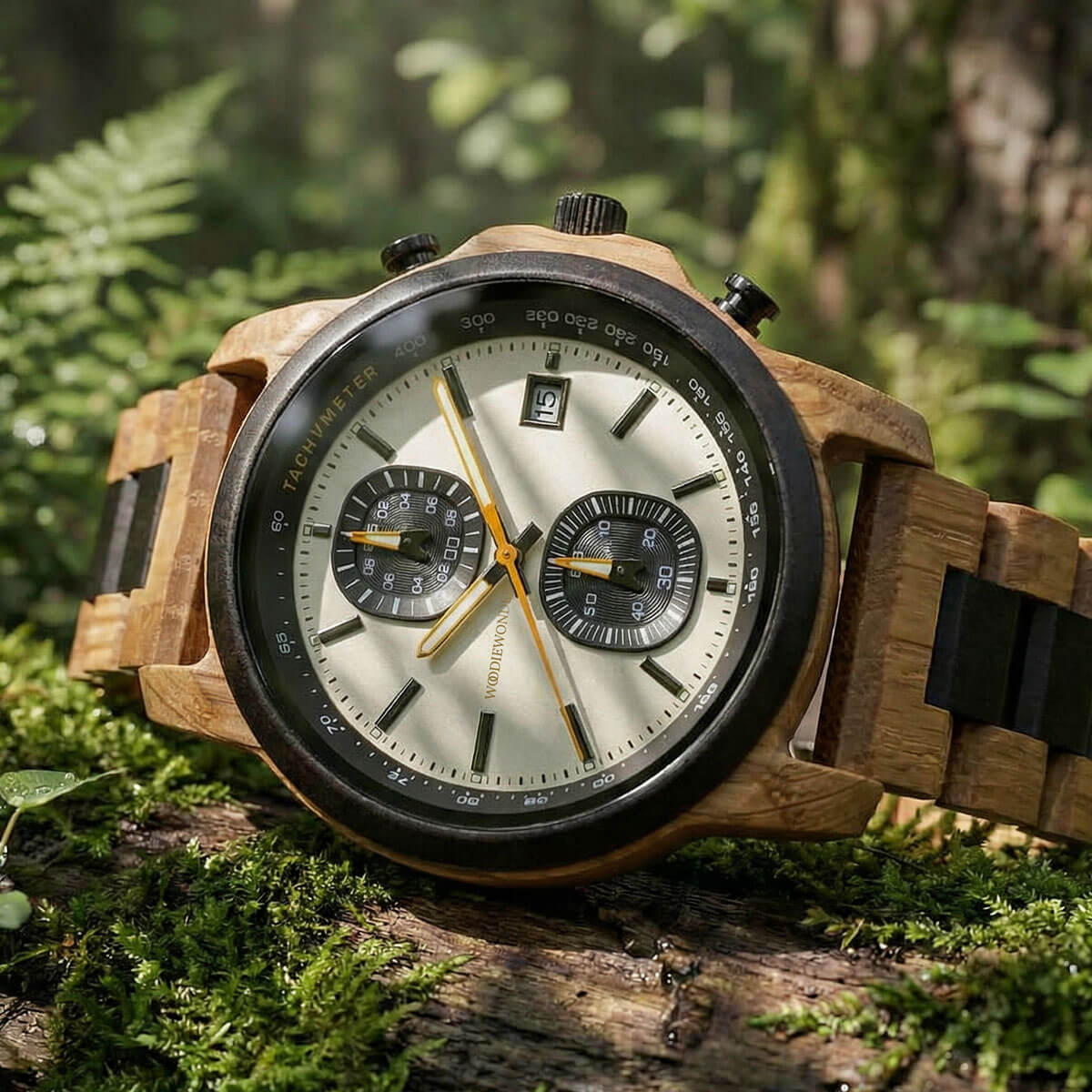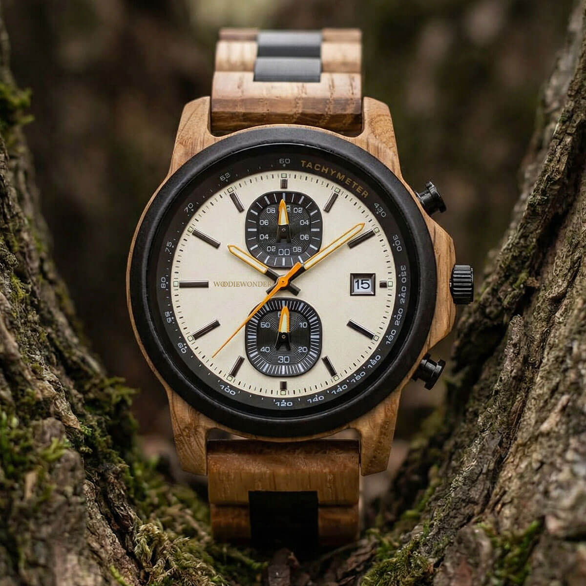Odkryj wyjątkowy męski zegarek, który doskonale łączy elegancję z funkcjonalnością. Wykonany z dębu i hebanu, zachwyca nie tylko wytrzymałością, ale również naturalnym pięknem. Dzięki swojej lekkości, noszenie go jest czystą przyjemnością. Jasna tarcza z wyrazistym kontrastem oraz tachometr podkreślają jego styl, tworząc niepowtarzalny dodatek dla mężczyzny z charakterem.