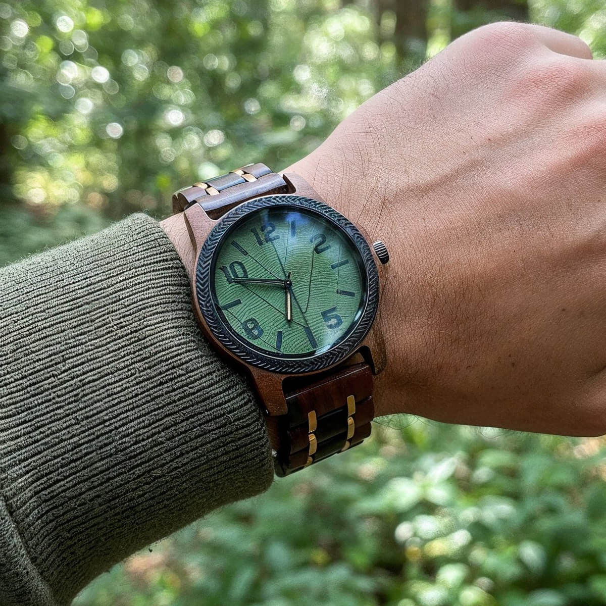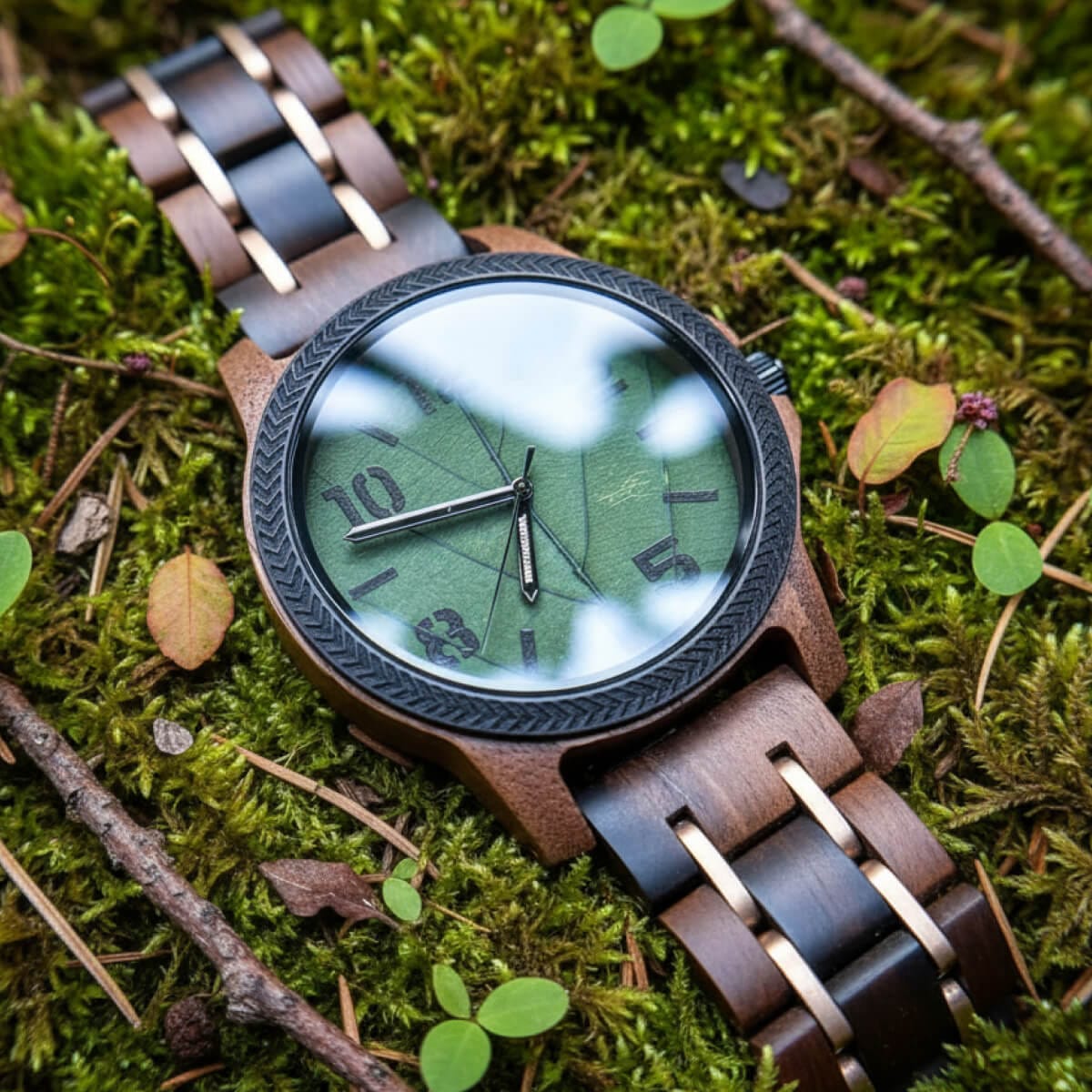 Zegarek, który łączy naturalne piękno drewna z wyrazistym wzorem liścia na tarczy. Stworzony dla tych, którzy cenią subtelne odniesienia do natury i wyjątkowy styl.